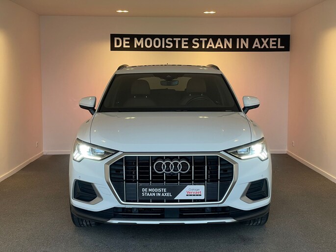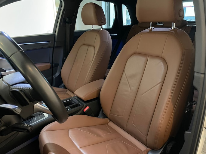 U rijdt gemakkelijk, comfortabel en zonder zorgen met deze Audi Q3. Het is een auto van het bouwjaar 2019, hij heeft 39962 kilometer op de teller staan. Met zijn benzinemotor en automatische transmissie is dit een prima auto voor nog vele kilometers. En o ja, het lederen interieur is ook een vermelding waard! Deze Audi Q3 heeft verwarmbare voorstoelen, voor zowel bestuurder als bijrijder. Opvallend zijn de stoere sportstoelen, die zorgen voor een onwrikbare zit in de scherpe bochten. Met een druk op de knop gaat de elektrische achterklep open. Tot de uitrusting behoren ook 18 inch lichtmetalen velgen, LED koplampen, warmtewerend glas, zwarte hemelbekleding, aluminium dakrailing en elektrisch inklapbare buitenspiegels.