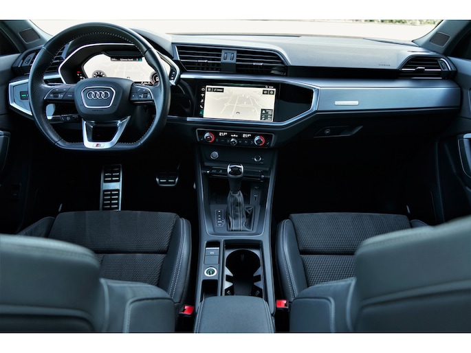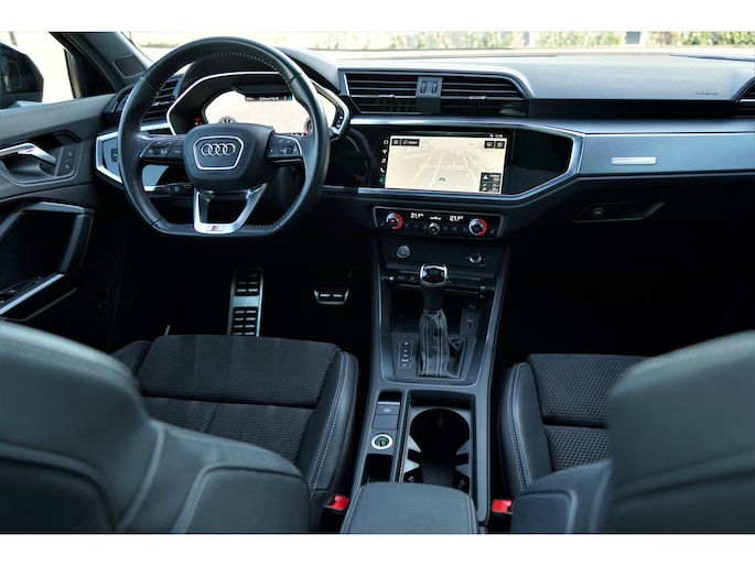 Audi Q3 Sportback 40 TFSI quattro S-line uitgevoerd in de prachtige kleur 'Daytonagrijs metallic'. De Q3 sportback 40 TFSI quattro heeft een vermogen van 191 pk, permanente vierwielaandrijving (quattro) en een trekgewicht van maar liefst 2.100 kg. De auto is altijd perfect onderhouden en verkeert in zeer goede staat. Daarnaast is de auto mega compleet uitgerust met o.a. de volgende lijst aan opties: