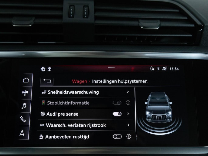 Zoals je mag verwachten van deze Audi Q3 is hij uitgerust met een reeks aan actieve veiligheidssystemen. Je rijdt ook veiliger omdat deze auto voor jou de verkeersborden langs de weg kan lezen. De belangrijkste borden worden op jouw instrumentarium geprojecteerd, zodat je ze niet kunt missen. Onbedoeld bumperkleven is er niet bij, dankzij de forward collision warning. Die waarschuwt direct als een botsrisico met je voorligger dreigt. De auto is ook uitgerust met hill hold functie, autonoom remsysteem en bandenspanningcontrolesysteem.