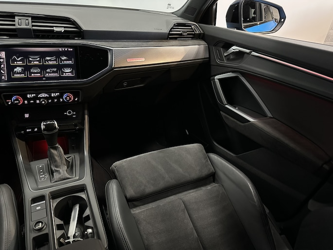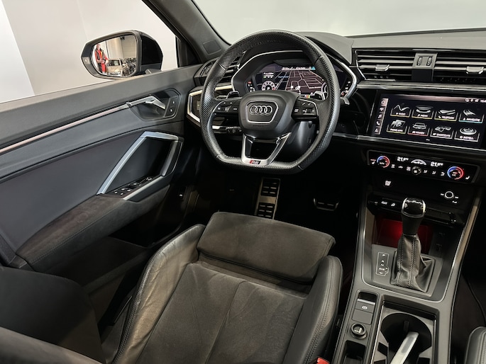 Kwaliteit komt nooit tekort in Duits vakmanschap, dat is te zien aan deze Audi RS Q3 Sportback met zijn stijlvolle ontwerp en comfortabele interieur. Sportief, stoer en net even anders dan anders, mede dankzij de S-Line styling. De aandrijving van deze Audi wordt verzorgd door een vijfcilinder benzinemotor en een automatische transmissie. U wilt comfort? Die is er, met het lederen interieur. U wilt gemak? Kijk dan even naar de elektrisch bedienbare achterklep. Ook in de winter en als het koud is, heeft u het snel weer warm dankzij de stoelverwarming in deze auto. Dankzij de matrix LED-verlichting geven de koplampen ook in het donker daglicht. In deze Audi profiteert u onder andere ook van: 21 inch lichtmetalen velgen, sportonderstel, adaptief dempingsysteem, warmtewerend glas, zwarte hemelbekleding en aluminium dakrailing.