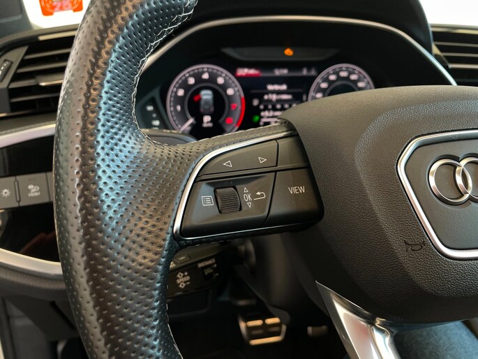 Deze Audi Q3 45 TFSI e S Edition is een stijlvolle en zeer complete plug-in hybrid SUV met een 245 pk sterke gecombineerde aandrijflijn (benzine + elektrisch) en een soepele automaat, zo ervaar je ruim voldoende vermogen en toch een zuinige rit, met de mogelijkheid om korte afstanden volledig elektrisch te rijden.