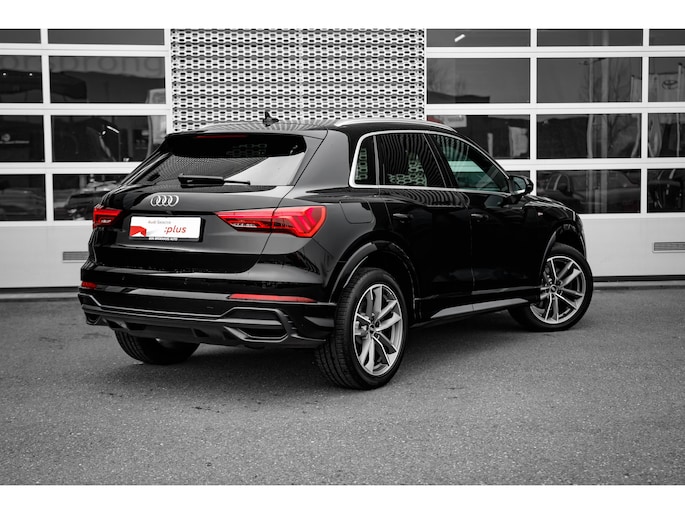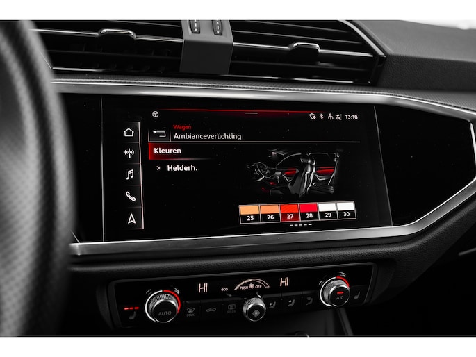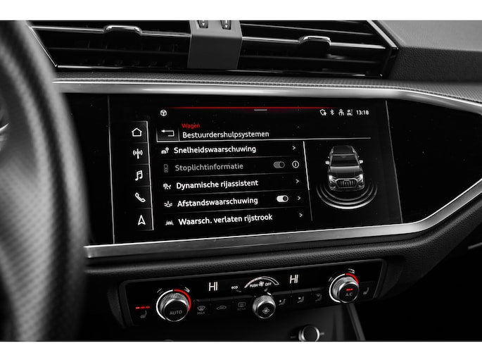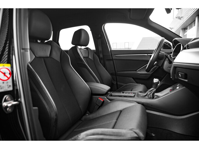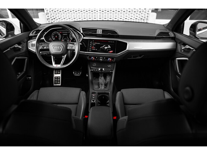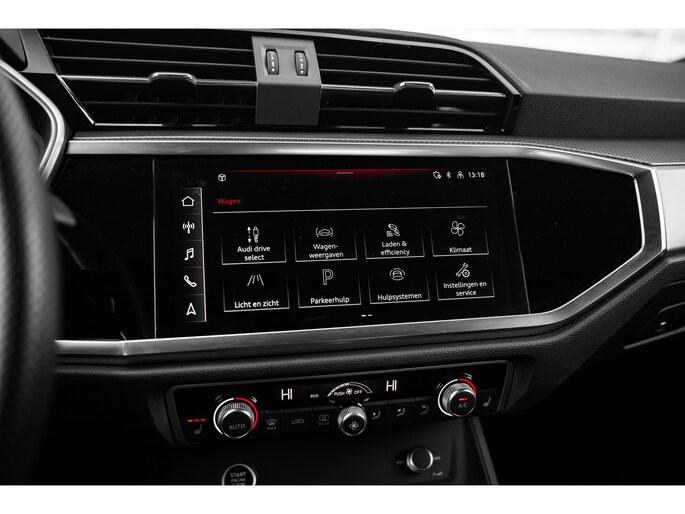 Het uitzonderlijke comfort en stijlvolle uiterlijk van de Audi Q3 straalt in elk aspect haar superioriteit uit. Dit is typerend voor deze hoogwaardige Duitse auto. Met de kenmerkende S-Line styling toont deze Audi zich van zijn sportieve kant. Deze hybride heeft dankzij de extra elektromotor een zeer laag brandstofverbruik. De sportstoelen geven u veel zitsteun. De bagageruimte is toegankelijk via een comfortverhogende elektrische achterklep. Ook 18 inch lichtmetalen velgen, Full LED koplampen, halflederen bekleding, warmtewerend glas, in delen neerklapbare achterbank en LED-achterlichten zijn aan boord. Het digitale dashboard rekent mee, denkt mee en rijdt mee. Alle info overzichtelijk in beeld, overal. Connected Services voegt nog meer comfort en veiligheid toe aan deze auto. Met de knoppen op het stuur regelt u het audio-installatiesysteem en het navigatiesysteem met harde schijf, terwijl u uw blik op de weg gericht houdt. De audio-installatie biedt daarbij glasheldere ontvangst dankzij DAB-ontvangst. Met de electronic climate control selecteert u de gewenste temperatuur. Het systeem doet de rest. Parkeersensoren zijn een waardevolle toevoeging aan deze auto. De sensoren waarschuwen tijdens het parkeren en voorkomen schade aan de auto. Ook lederen sportstuur, regensensor, cruise control en centrale deurvergrendeling met afstandsbediening horen tot de voorzieningen op deze auto. Geavanceerde technische systemen houden tijdens elke rit het verkeer in de gaten en reageren op potentieel gevaarlijke situaties. Onderweg fungeert de verkeersbord-detectie als het ware als uw bijrijder en attendeert u op de verkeersborden langs de weg. Mooi binnen de lijnen van de rijstrook blijven? Het Lane-keeping systeem helpt altijd een handje. Het forward collision warning-systeem is constant alert en detecteert via sensor de afstand tot voorliggers. Wordt die te klein, dan volgt een automatische waarschuwing. U bent mede dankzij frontale botsbescherming en bandenspanningcontrolesysteem steeds veilig onderweg. We kunnen u wel duizend dingen over deze auto vertellen, maar het is beter als u hem zelf komt bekijken en ervaren. Neemt u snel contact met ons op?