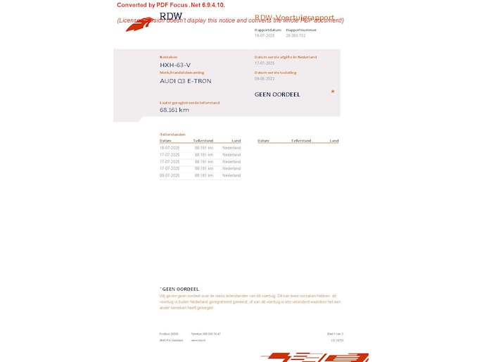 | Wegenbelasting/3mnd | € 307 - € 335 |