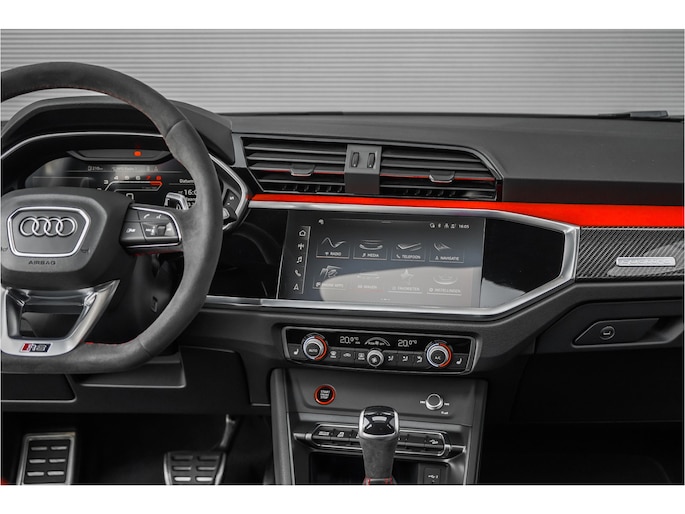 Autobedrijf Schouten biedt u deze Audi Q3 Sportback TFSI RS aan, met nog maar 69.570 KM. Het exterieur van de Audi RS Q3 is uitgevoerd in de gave kleur: 'Nardo Gray', gecombineerd met een zwart / rood lederen interieur. Verder beschikt de Audi RS Q3 Sportback over een mooie lijst met fabrieksopties. Denk hierbij aan opties zoals: