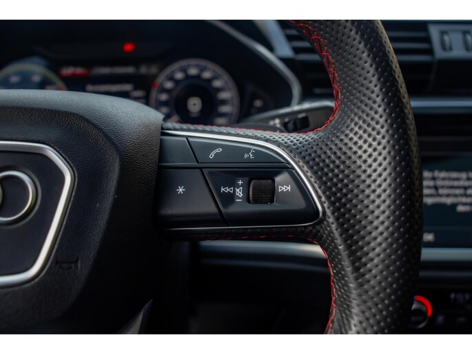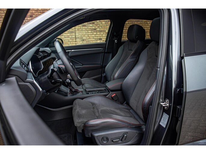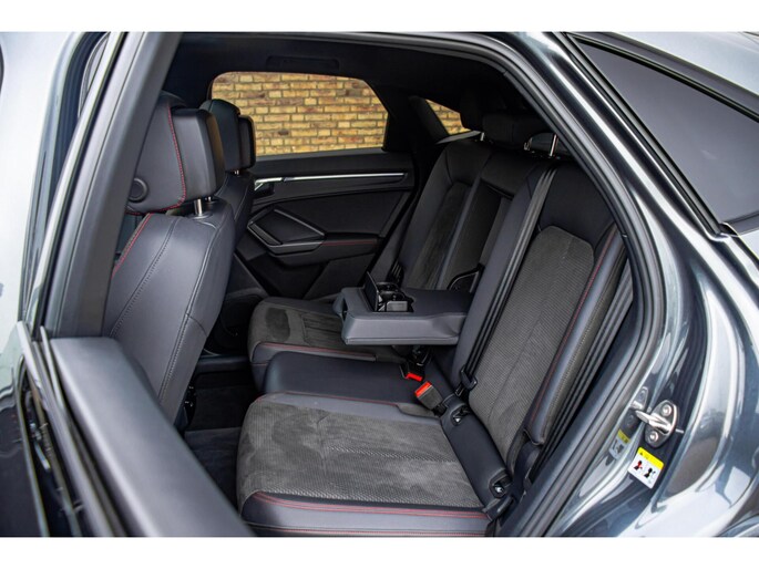 Het exterieur van deze Q3 Sportback is werkelijk een blikvanger. De lak in Daytona Grau metallic benadrukt de sportieve lijnen van het S-Line pakket, terwijl de indrukwekkende 20 inch velgen de auto een krachtige 'stance' geven. Dankzij het grote panoramadak geniet u van een lichte lichtinval in het interieur en een extra gevoel van vrijheid. De combinatie van de aflopende daklijn van de Sportback en de moderne LED-verlichting zorgt voor een dynamisch en tijdloos design.