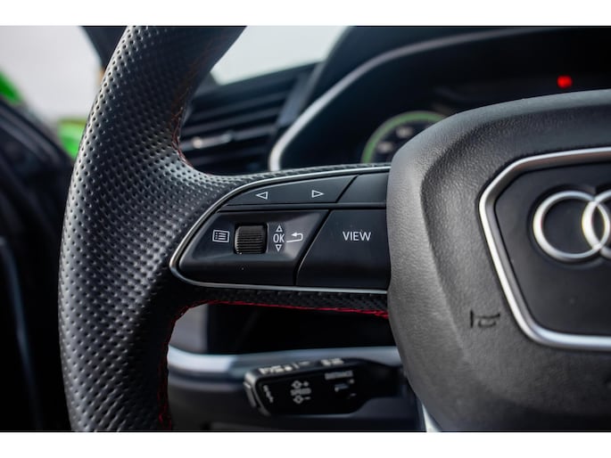 Binnenin ademt deze Audi sportiviteit en vakmanschap. Het interieur is hoogwaardig afgewerkt met half lederen bekleding, gecombineerd met opvallende rode stiksels die overal terugkomen. De sfeervolle ambientverlichting en het premium Sonos audiosysteem zorgen voor een zintuigprikkelende rijervaring. Aan comfort en techniek geen gebrek: de auto is uitgerust met elektrisch verstelbare stoelen met memoryfunctie, keyless entry en Apple CarPlay/DAB voor optimale connectiviteit. Veiligheid staat centraal dankzij de adaptieve cruise control, dodehoekdetectie en de 360 graden camera, waardoor parkeren en manoeuvreren moeiteloos verloopt.
