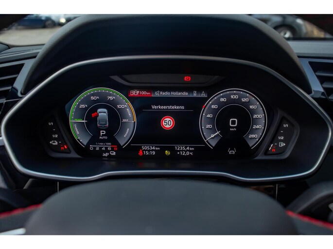 Onder de motorkap schuilt een krachtige hybride aandrijflijn die goed is voor een systeemvermogen van 245 pk en een koppel van 400 Nm. Dit resulteert in een vlotte sprint van 0 naar 100 km/u in slechts 7,3 seconden. Ondanks deze sportieve cijfers is de Q3 Sportback uiterst efficiënt; met een theoretisch verbruik van slechts 1,7 l op 100 km (WLTP) rijdt u uiterst duurzaam, zeker bij consequent laden. De kilometerstand van 50.534 km is volledig aantoonbaar en passend bij de uitstekende staat van de auto.