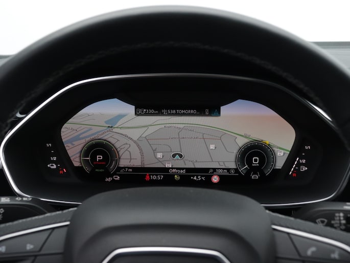 Tijdens de rit wordt je als bestuurder ondersteund door verschillende systemen die de weg en jouw omgeving in de gaten houden. Dat de auto steeds meer taken van de bestuurder overneemt, merk je bijvoorbeeld aan het systeem voor verkeersbord-detectie in deze auto. Het Lane-keeping systeem zorgt voor een automatisch constante positie binnen de rijstrook. Afdwalen is uitgesloten. Mindert een voorligger onverwachts te veel vaart, dan komt de forward collision warning in actie en waarschuwt meteen. Bovenop deze veiligheidsfeatures heeft deze Audi bovendien dodehoekdetectie, hill hold functie, frontale botsbescherming en bandenspanningcontrolesysteem.