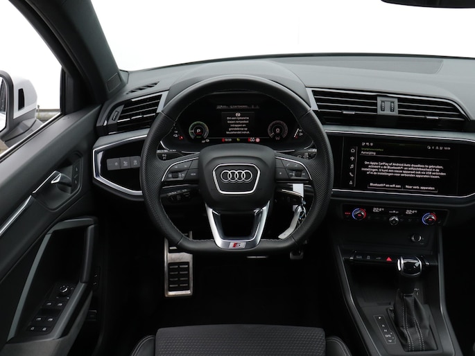 Met een auto als deze Audi Q3 kom jij absoluut goed voor de dag. Deze auto komt uit 2024. De elegante lijnvoering wordt versterkt door subtiele S-Line styling details. Op de teller van deze auto staat slechts 19992 kilometer. Elektrisch rijden of toch benzine? Voor allebei is iets te zeggen. Daarom biedt de hybride motor van deze Audi Q3 de keus. Ga samen met je bijrijder lekker zitten in de verwarmbare voorstoelen. De sportstoelen geven het interieur van deze Q3 een super strakke en sportieve uitstraling. Een handige voorziening op deze auto is de elektrische achterklep die je op afstand kunt openen. Bij de uitrusting van deze Audi horen onder meer 20 inch lichtmetalen velgen, Full LED koplampen, warmtewerend glas, in delen neerklapbare achterbank, LED-achterlichten en verstelbare lendensteunen.