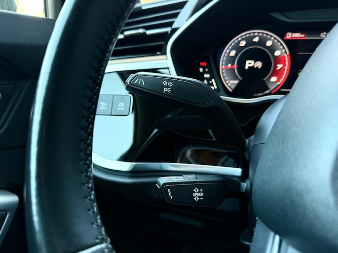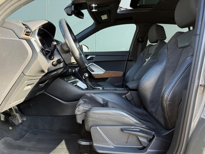 Stijlvolle vormgeving, een comfortabel en ruim interieur, een onderstel dat alle wegen en omstandigheden aankan en een motor die topprestaties levert bij een bescheiden brandstofverbruik: deze Audi Q3 heeft het allemaal. Omdat het oog ook wat wil, is de S-Line styling een heel aantrekkelijke plus. Met zijn benzinemotor en automatische transmissie is dit een prima auto voor nog vele kilometers. Doe maar luxe! Neem plaats in de verwarmbare voorstoelen en voel de weldaad in koude dagen. De sportstoelen geven het interieur van deze Q3 een super strakke en sportieve uitstraling. Dat noemen ze nou een ruimtelijk effect: het elektrisch bediende glazen panoramadak. Een handige voorziening op deze auto is de elektrische achterklep die u op afstand kunt openen. Perfect zicht bij nacht en slecht weer? Dat leveren de koplampen met matrix LED-verlichting. Verder is de Audi uitgerust met: 20 inch lichtmetalen velgen, sportonderstel, warmtewerend glas, in delen neerklapbare achterbank en LED-achterlichten.