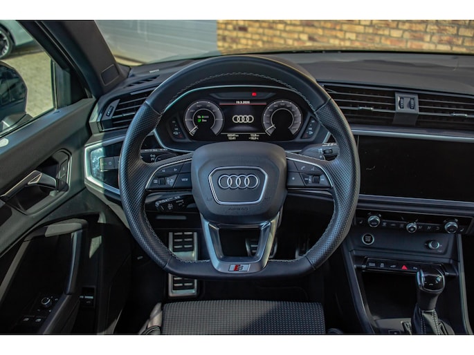 Audi Q3 45 TFSI e S-Line, BTW, 1e eig. Dealer O.H. Pano, Half Leder, Ambient, SONOS, ACC, Carplay, Dodehoek, Keyless, DAB, DigDash