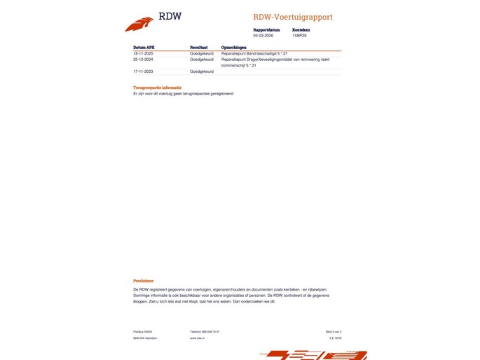 Kilometerstand gecontroleerd