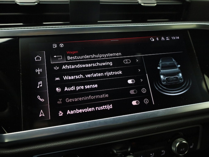 Zoals u mag verwachten van deze Audi Q3 is hij uitgerust met een reeks aan actieve veiligheidssystemen. Het Lane-keeping systeem doet precies wat nodig is: waarschuwen en corrigeren bij onbedoelde overschrijding van de rijstrooklijnen. Kop-staartbotsingen vormen een belangrijk deel van de meest voorkomende aanrijdingen. De forward collision warning van deze auto voorkomt zulke botsingen geheel of reduceert de ernst van de schade aanzienlijk. Bovenop deze veiligheidsfeatures heeft deze Audi bovendien hill hold functie, frontale botsbescherming en bandenspanningcontrolesysteem.