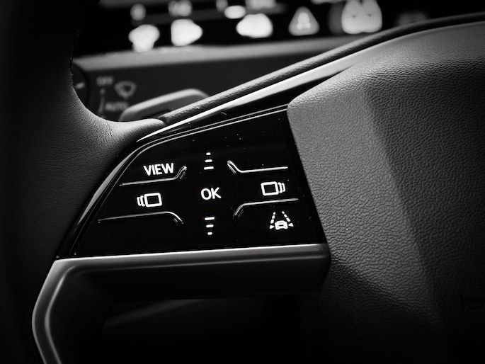 - Tweespaaks lederen stuur, multifunctioneel, met stuurpaddels, verwarmbaar (2FK)