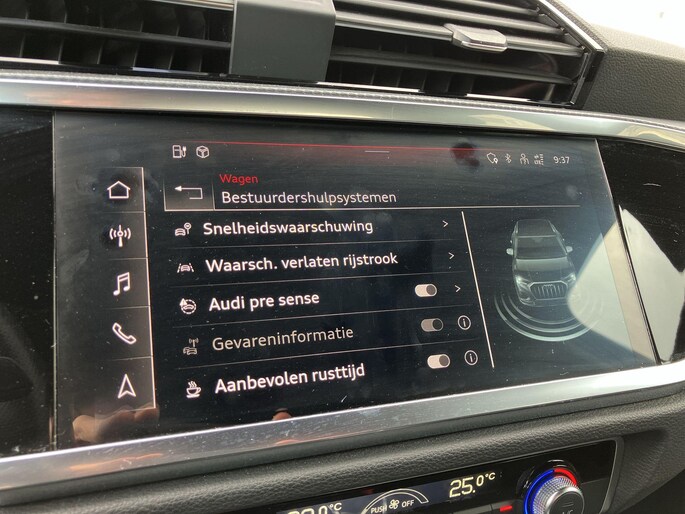 Het zal u verbazen hoe deze auto in staat is om voor u de omgeving en het verkeer om u heen in de gaten te houden. In het instrumentarium kunt u bovendien de verkeersborden zien die u onderweg tegenkomt. Zo helpt deze Audi u om veiliger te rijden. Een camera houdt de juiste koers binnen de rijstrook in de gaten en het Lane-keeping systeem corrigeert bij afwijkingen. Forward collision warning is een automatisch waarschuwingssysteem dat direct in werking treedt bij gevaar voor een kop-staartbotsing. In deze Audi vinden we verder een hill hold functie, frontale botsbescherming en bandenspanningcontrolesysteem.