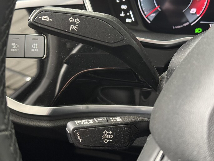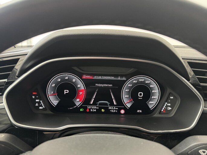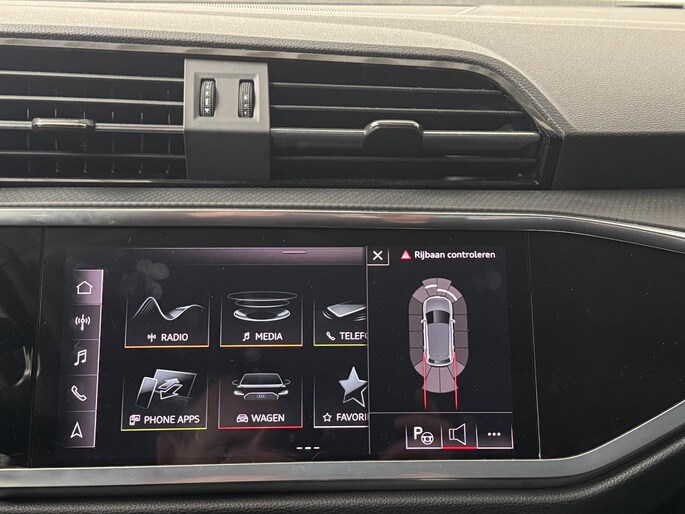 Zoals u mag verwachten van deze Audi Q3 is hij uitgerust met een reeks aan actieve veiligheidssystemen. Dat de auto steeds meer taken van de bestuurder overneemt, merkt u bijvoorbeeld aan het systeem voor verkeersbord-detectie in deze Audi. Het Lane-keeping systeem zorgt voor een automatisch constante positie binnen de rijstrook. Afdwalen is uitgesloten. De forward collision warning reduceert het gevaar van een botsing met een voorligger significant. Verder is deze auto uitgerust met hill hold functie, autonoom remsysteem en bandenspanningcontrolesysteem.