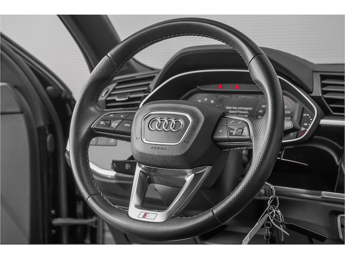 Autobedrijf Schouten biedt u deze leuke Audi Q3 45 TFSI e S-Line aan, met nog maar 93.190 KM. Het exterieur van de Audi Q3 is uitgevoerd in de diepe metallic kleur: 'Mythosschwarz', gecombineerd met een zwart lederen / alcantara interieur. Verder beschikt de Audi Q3 45 TFSI e S-Line over een mooie lijst met opties, waaronder: