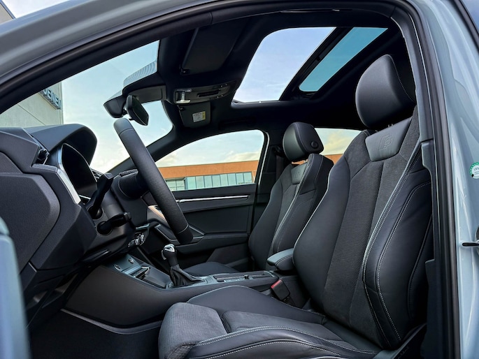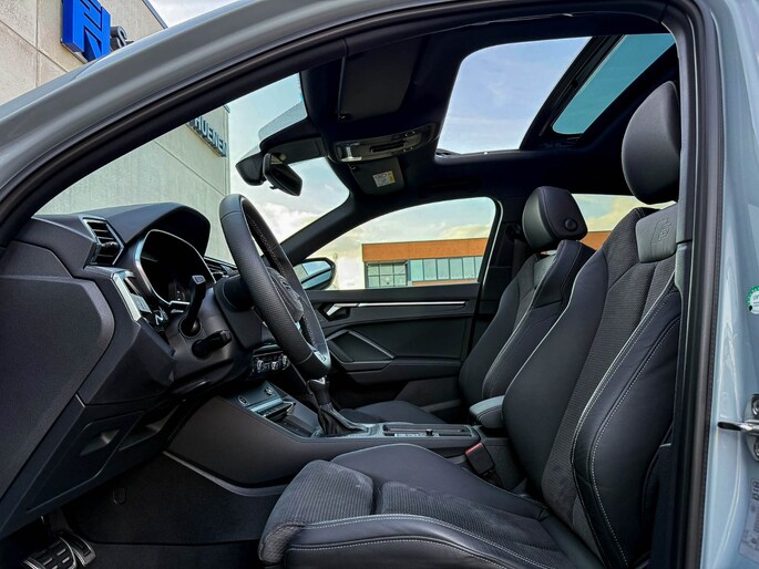 NIEUW MODEL 2023!|Audi Exclusive|S-Line interieur|S-Line exterieur|Audi Exclusive Pfeilgrau Metallic lak|45 TFSIe Plug in Hybride 245pk / 400Nm|S-Tronic Automaat|Panoramisch glazen schuif-/kanteldak|Elektrisch bedienbare zonwering panoramadak|Virtual Cockpit Plus|Premium leder pakket Audi Exclusive o.a. deurpanelen/ armliggers incl. Grijze stiksels|Zwart Valcona leder/alcantara S-Line Sportstoelen incl. Grijze stiksels|Stoelverwarming|Geperforeerd lederen 3-spaaks S-line Sportstuurwiel & Grijze stiksels|Audi Exclusive Alcantara airbag met Grijs stiksel|Rear View / Achteruitrijcamera|Parkeersensoren voor- & achterzijde|Audi Drive Select - Instelbare rijprofielinstellingen|LED dagrijverlichting|HD Matrix dynamische koplampen|LED achterlichten|Afstandswaarschuwing|ACC / Adaptieve Cruise Control|Lane Assist|Side Assist / Dodehoeksensor|Filehulp|Audi Pre Sense|Attention Assist|Grootlichtassist|Voice Control|Elektrisch bedienbare achterklep|Afstandswaarschuwing|Navigatiesysteem MMI Plus groot scherm|Uitgebreide boordcomputer|Bluetooth|Audi Premium Sound incl. Subwoofer|DAB+ / Digital Audio Broadcasting|Audi Connect Key|APP Connect|Apple CarPlay / Android Auto|Keyless Entry & Keyless GO|18inch LM Audi S-line velgen|*Optioneel: Getoonde 21inch Black Performance velgen|Coming-/Leaving Home|Licht- & Regensensor|Ambiance sfeerverlichting Premium|Climate Control dual-zone|Aluminium interieurafwerking|Spiegelpakket - Elektrisch verwb.-/verstelb. + inklapbare buitenspiegels|Carbonlook interieur pakket|Zwarte hemelbekleding|Automatisch dimmende binnenspiegel & buitenspiegels|Elektrische ramen voor- & achterzijde|Warmtewerende voorruit|RVS Sportpedalen|RVS instaplijsten incl. LED verlichting|Zwarte Audi emblemen rondom|Black Pack Plus / Zwart optiekpakket|Hoogglans zwarte grille|Hoogglans zwarte raamomlijsting|Hoogglans zwarte Audi emblemen|Hoogglans zwarte sideskirts|Hoogglans zwarte spoilers|Hoogglans zwarte buitenspiegels|Audi RSQ3 Design Black diffuser + Zwarte uitlaat sierstukken|Privacy Glass|Standkachel / Interieurvoorverwarming fabrieksaf|