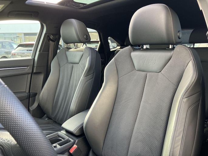 Dit noemen we een groentje met kilometers. Jongste generatie, inclusief alle voordelen. Maar de top is eraf, en dat scheelt! S-Line styling vertegenwoordigt de overtreffende trap in smaakvolle sportiviteit. Kiezen tussen benzine of elektrisch hoeft bij deze Audi Q3 Sportback niet. De hybride motor schakelt gemakkelijk over als u dat wilt. Het elektrisch bediende glazen panorama dak laat een weelde van licht naar binnen vallen. En aan de achterzijde opent u het elektrisch bedienbare achterklep met één simpele klik. Ziet er goed uit, die sportstoelen. Maar waar het om gaat, is de solide zit onder alle omstandigheden. De uitmonstering van deze auto wordt gecompleteerd door onder meer 20 inch lichtmetalen velgen, Full LED koplampen, adaptief dempingsysteem, warmtewerend glas, in delen neerklapbare achterbank en LED-achterlichten.