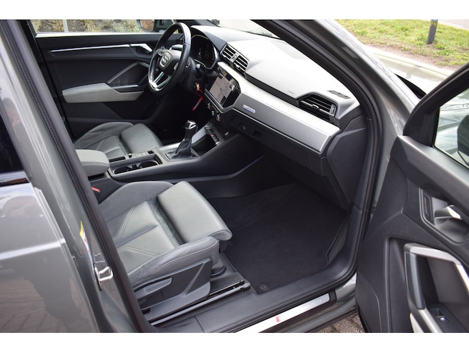 Dit is niet zomaar een Audi Q3 45 TFSI e S-LINE edition. De hoge prestaties van de motor, het strak afgestelde onderstel en de uitgekiende verhoudingen van de transmissie staan garant voor bergen rijplezier. Voor de echte liefhebber is de S-Line styling natuurlijk een dikke plus. De uitstekende prestaties van deze auto komen van de viercilinder motor en de automatische transmissie. Op koude en donkere dagen zijn de verwarmbare voorstoelen een uitkomst. Voor het pittige uiterlijk én goed gesteund zitten zorgen de sportstoelen. Het daglicht valt in overvloed via het elektrisch bediende panoramadak op het fraaie interieur. Met de krachtige xenonverlichting heeft u optimaal zicht in het donker. De uitmonstering van deze auto wordt gecompleteerd door onder meer elektrisch bedienbaar zonnescherm, 20 inch lichtmetalen velgen, halflederen bekleding, warmtewerend glas, elektrische handrem en zwarte hemelbekleding.