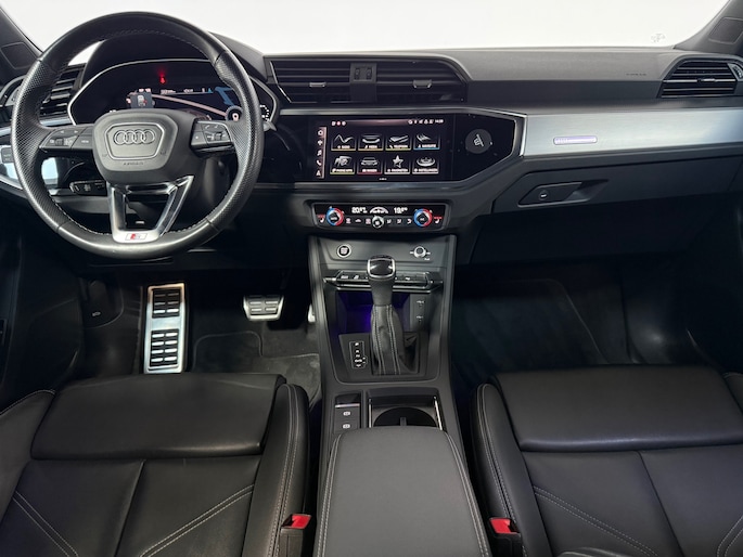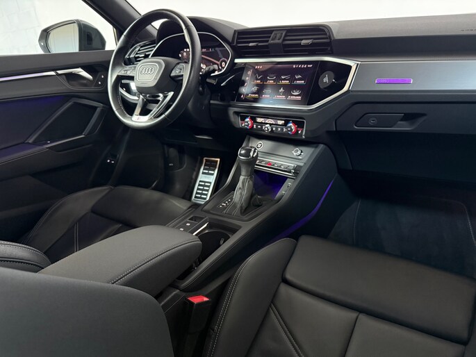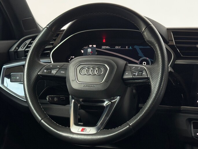 Bij het ontwerpen van de Audi Q3 Sportback stonden uw comfort en uw veiligheid centraal. S-Line styling benadrukt de sportieve functionaliteit van het ontwerp. De krachtige motor geeft deze Audi uitstekende prestaties. Eén blik naar binnen bewijst het al: pure klasse, onder meer dankzij het lederen interieur. Deze Audi Q3 Sportback heeft verwarmbare voorstoelen, voor zowel bestuurder als bijrijder. Stevig ondersteund door de sportstoelen blijft u bij elke beweging op uw plek. Fijn zo'n elektrisch bediend glazen panoramadak. Een praktische extra is de elektrisch bedienbare achterklep die opent en sluit met een druk op de knop. Voorzien van matrix LED-verlichting. De auto dimt precies dat deel van de lichtstraal waar de voor- of tegenliggers in rijden. De overige segmenten blijven aan en verlichten de weg. Verder is de Audi uitgerust met: 20 inch lichtmetalen velgen, warmtewerend glas, in delen neerklapbare achterbank, LED-achterlichten en variabele stuurbekrachtiging.