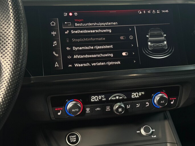 Deze Audi biedt u niet alleen comfort en rijplezier, maar ook veiligheid. Actieve veiligheidssystemen houden voor u de weg in de gaten en reageren op onvoorziene situaties voordat u dat kunt. Bij de veiligheidssystemen van deze Audi hoort ook de verkeersbord-detectie. Die leest tijdens het rijden als het ware met u mee en attendeert u op de significante verkeersborden langs en boven de weg. Voorzien van het Lane-keeping systeem. Ofwel: blijf automatisch in je baan. Forward collision warning waarschuwt voor een kop-staart botsing. Bovenop deze veiligheidsfeatures heeft deze Audi bovendien dodehoekdetectie, accident avoidance system, hill hold functie, frontale botsbescherming en bandenspanningcontrolesysteem.