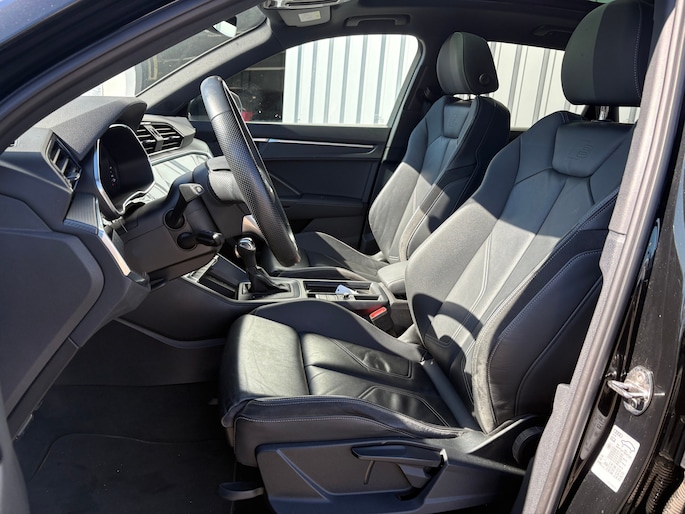 Deze Audi Q3 gaat met gemak nog vele, vele, vele tienduizenden kilometers mee. Energiek rijgedrag, fraaie uitstraling en een plezier om in te rijden, deze Audi Q3. Met de S-Line styling mag deze auto zeker gezien worden. De hybridemotor geeft deze auto sportieve prestaties en zorgt voor een laag brandstofverbruik. Altijd al een voorkeur voor een lederen interieur gehad? Deze Audi Q3 heeft het! 's Winters komen de verwarmbare voorstoelen heerlijk van pas. De sportstoelen geven u veel zitsteun. Comfort, licht en het complete gevoel van ruimte wordt verzorgd door het elektrisch bediende panoramadak. De bagageruimte is toegankelijk via een comfortverhogende elektrische achterklep. U wordt in deze auto ook getrakteerd op Full LED koplampen, halflederen bekleding, warmtewerend glas, in delen neerklapbare achterbank, LED-achterlichten en verstelbare lendensteunen. Snelheid, omgevingsinfo, navigatie en communicatie... Het digitale dashboard geeft alles realtime weer. Kommaar-kommaar-kommaar, aldus de achteruitrijcamera. Iedere centimeter vrije ruimte komt haarscherp in beeld. Schadevrij inparkeren maar! Adaptive cruise control is een comfortabele en veilige optie. Het systeem reguleert de snelheid en houdt automatisch afstand tot uw voorligger. De speciale app verbindt met Connected Services, die de status van vitale functies bijhoudt en waarschuwt als u bijvoorbeeld moet tanken, de bandenspanning moet controleren of olie moet bijvullen. U bedient het navigatiesysteem met harde schijf en het audio-installatiesysteem met DAB-radio via knoppen op het stuur. Zo kunt u steeds uw aandacht gericht houden op de weg. Deze Audi is voorzien van electronic climate control, lederen sportstuur, regensensor, automatisch dimmende binnenspiegel en centrale deurvergrendeling met afstandsbediening. Tijdens de rit wordt u als bestuurder ondersteund door verschillende systemen die de weg en uw omgeving in de gaten houden. Tijdens de rit hebt u altijd een bijrijder, want de verkeersbord-detectie leest de borden langs de weg en projecteert ze voor u op het instrumentarium. Keep your lane? Het Lane-keeping systeem zorgt er automatisch voor. Het forward collision warning-systeem waarschuwt indien een botsing dreigt met een voorliggend of tegemoetkomend voertuig. U bent mede dankzij frontale botsbescherming en bandenspanningcontrolesysteem steeds veilig onderweg. Heeft u interesse in deze mooie Audi? Bel ons dan of mail ons, om een afspraak te maken.