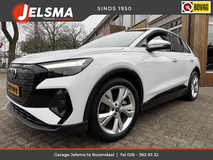 De vormgeving van deze Audi Q4 e-tron is geoptimaliseerd voor een optimale actieradius. Zo haalt u maximaal rijplezier uit elke kilometer. De elektromotor is stil en schoon. En met een verrassend grote actieradius! Een krachtige motor geeft deze auto zijn sportieve prestaties. De meegeleverde stoelverwarming zorgt in no time voor een behaaglijk gevoel als het buiten koud is. De achterklep opent automatisch met een druk op de knop. Handig als u met volle handen staat. Koplampen voorzien van de allernieuwste lichttechniek, matrix LED-verlichting. Bij de uitrusting van deze auto horen onder meer 20 inch lichtmetalen velgen, zwarte hemelbekleding, in delen neerklapbare achterbank, LED-achterlichten, verstelbare lendensteunen en snelheidsafhankelijke stuurbekrachtiging.