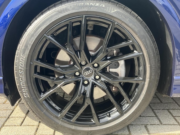 **getoonde (onbeschadigde) hoogglans zwarte originele Audi RS 21inch velgen met nwe en 2 zeer goede zomerbanden tegen € 1780,- meerprijs