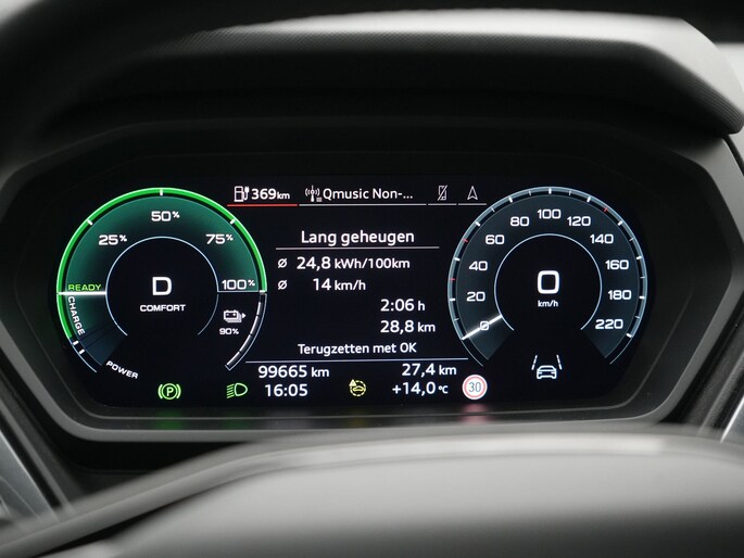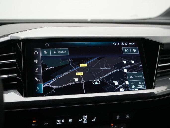 In de Audi Q4 e-tron heeft uw veiligheid en die van uw omgeving prioriteit. De head-up display zorgt dat u de weg én de route-info constant in beeld heeft. Een belangrijke bijdrage aan de veiligheid onderweg levert de verkeersbord-detectie in deze Audi. Deze Audi Q4 e-tron is ook behulpzaam als het gaat om een rechte koers. Het Lane-keeping systeem signaleert en corrigeert als u onbedoeld de rijstrooklijnen dreigt te overschrijden.