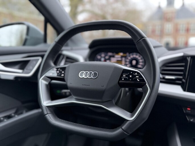 Wat een gave uitvoering is deze Q4 Sportback, deze kleur met de S-Line en zwarte accenten is werkelijk een plaatje!