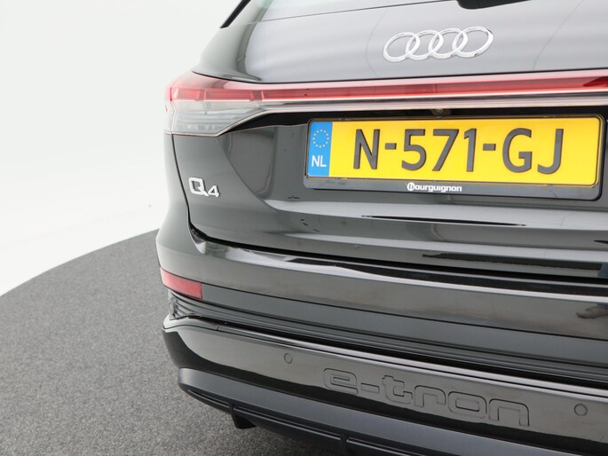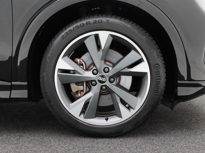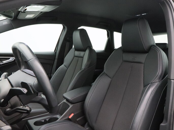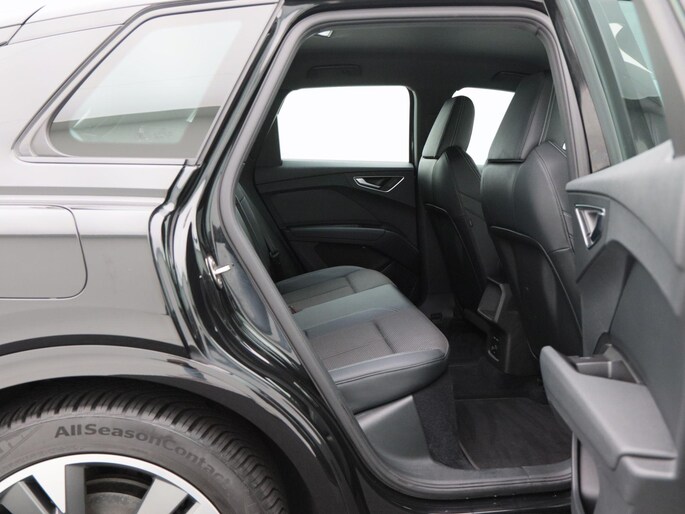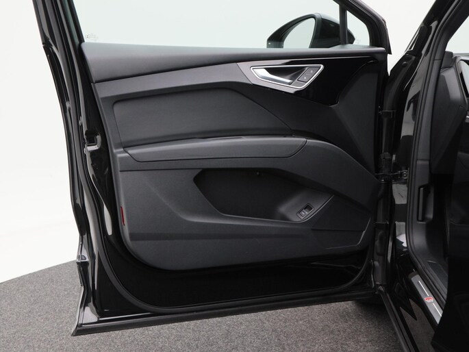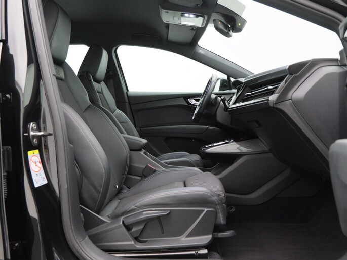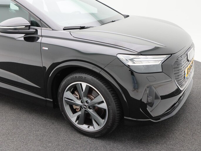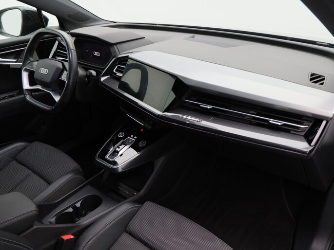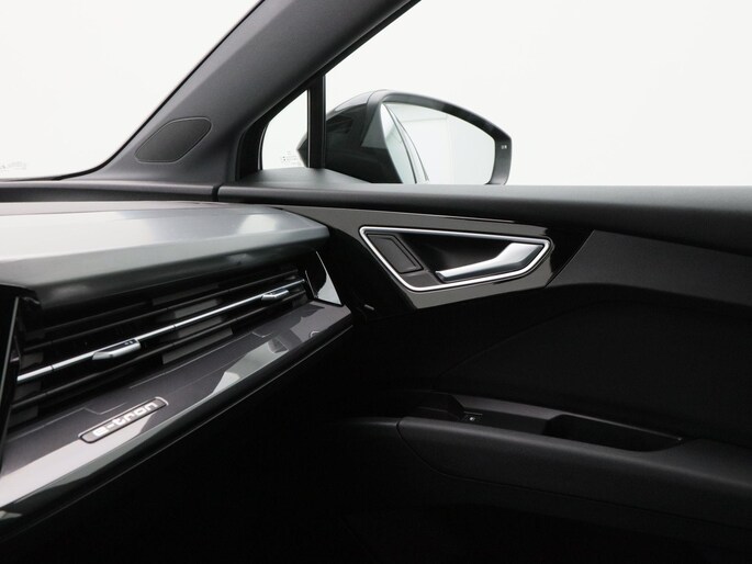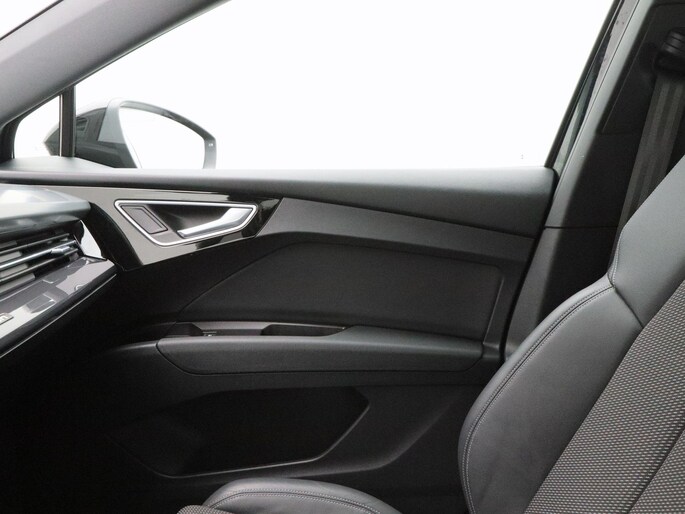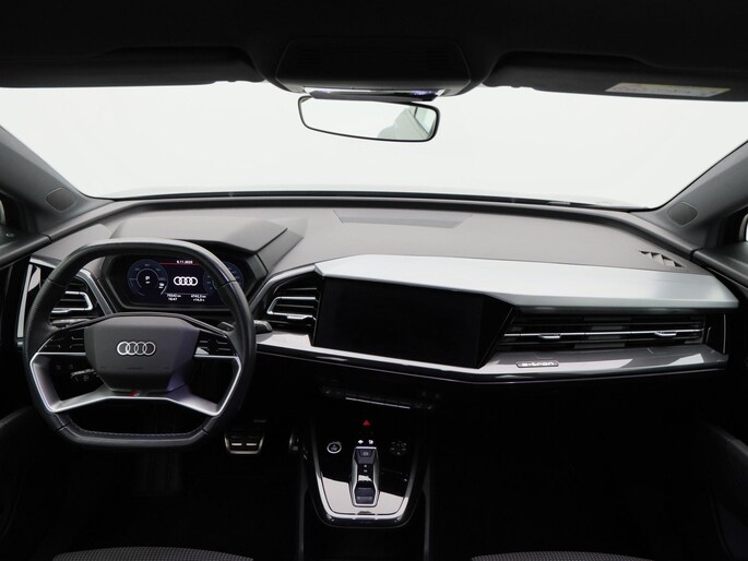 Qua uitstraling is deze Q4 e-tron onmiskenbaar sportief. De S-Line exterieurstyling, 20 inch lichtmetalen velgen, LED-verlichting, privacy glass en de zwarte hemelbekleding geven hem een krachtige en moderne uitstraling. De elektrisch bedienbare achterklep, parkeersensoren voor en achter, en de achteruitrijcamera zorgen voor praktisch gemak, terwijl de koplampsproeiers bijdragen aan optimaal zicht in alle omstandigheden.