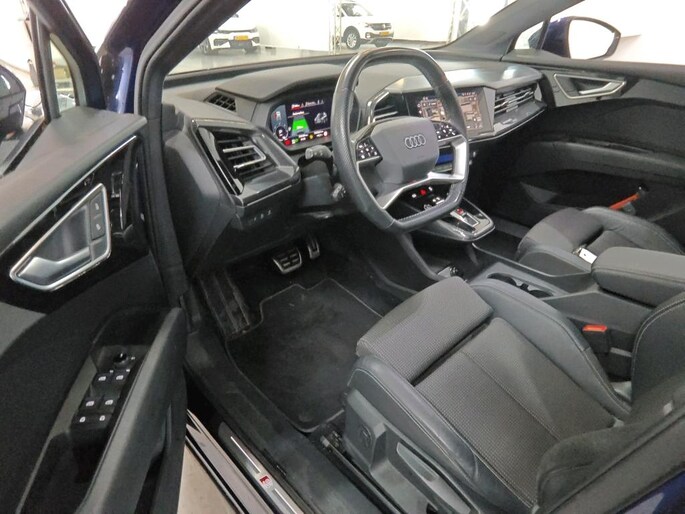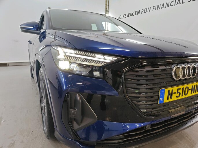 Duurzame mobiliteit is niet langer een ongrijpbare droom. Audi maakt het waar met de innovatieve elektrische Q4 e-tron. De fluisterstille elektromotor zorgt voor een serene rijervaring. S-Line styling benadrukt de sportieve functionaliteit van het ontwerp. De krachtige motor geeft deze Audi uitstekende prestaties. Deze Audi Q4 e-tron heeft verwarmbare voorstoelen, voor zowel bestuurder als bijrijder. Zijwaartse g-krachten worden solide opgevangen door de sportstoelen. Het interieur glanst in daglicht door het elektrisch bedienbare panoramadak. Met een druk op de knop gaat de elektrische achterklep open. De matrix LED-verlichting in de koplampen bestaat uit een raster van lichtpunten met maximale opbrengst. Bij tegenliggers past het systeem precies die punten aan die hinderlijk kunnen zijn. Je behoudt maximaal zicht! De uitmonstering van deze auto wordt gecompleteerd door onder meer 20 inch lichtmetalen velgen, sportonderstel, adaptief dempingsysteem, donker getint glas achter, in delen neerklapbare achterbank en LED-achterlichten.