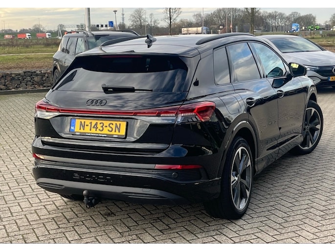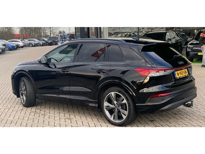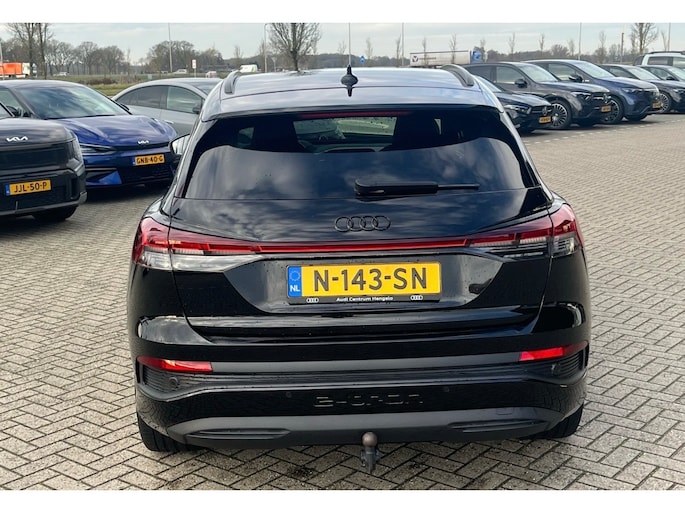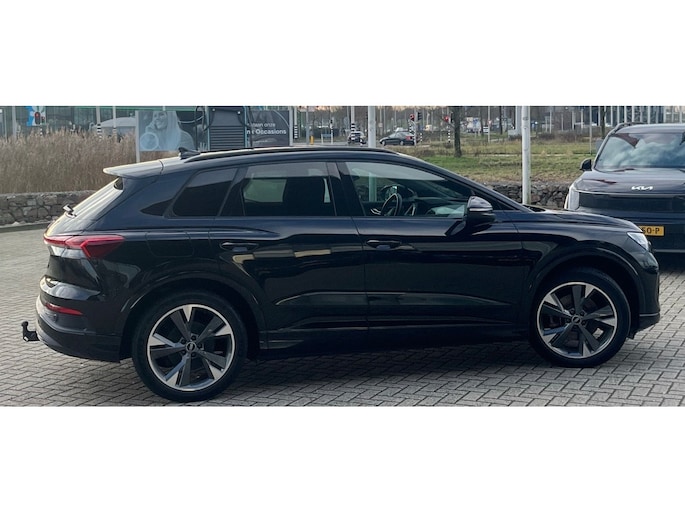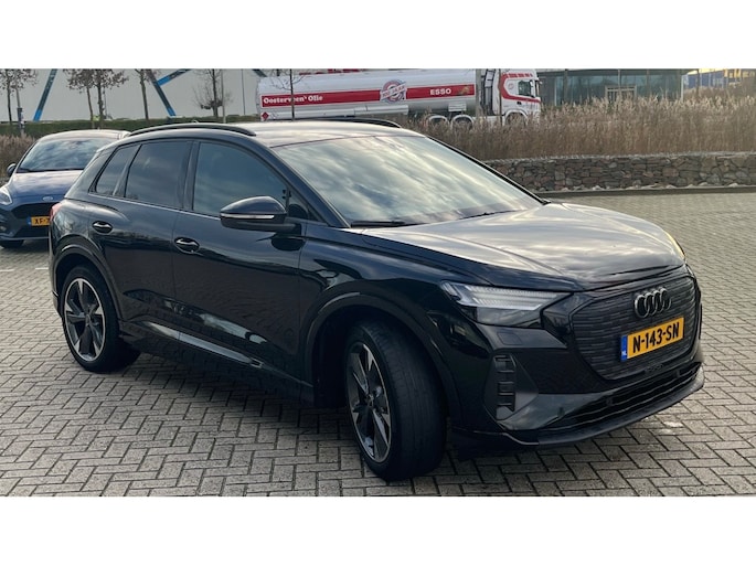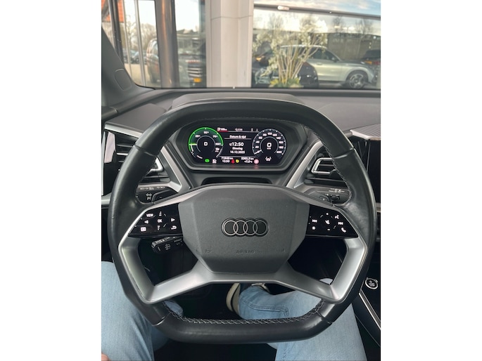 Het maakt niet uit of u binnen of buiten de stad rijdt. Het rijbereik van deze elektrische Audi Q4 e-tron biedt u alle vrijheid om te gaan en te staan waar u wilt. Stil en stevig optrekken zonder extra uitstoot? De elektromotor zorgt ervoor! Een krachtige motor geeft deze auto zijn sportieve prestaties. Ga samen met uw bijrijder lekker zitten in de verwarmbare voorstoelen. De sportstoelen geven het interieur van deze Q4 e-tron een super strakke en sportieve uitstraling. De elektrische achterklep opent met een druk op de knop, zodat u gemakkelijk toegang heeft tot de bagageruimte. De koplampen zijn voorzien van matrix LED-verlichting waarmee u aanzienlijk verder kan kijken in het donker. Het systeem past zelf de lichtstraal aan op het moment tegenliggers verblind kunnen worden. U wordt in deze auto ook getrakteerd op 20 inch lichtmetalen velgen, extra getint glas, neerklapbare achterbank en LED-achterlichten. Met het digitale dashboard in deze auto kunt u de interface van uw cockpit personaliseren. De elektrisch inklapbare trekhaak biedt het beste van twee werelden: de gebruiksmogelijkheden van een trekhaak zonder de storende uitstraling van een vaste kogel. De jeugd is niet los te maken van hun smartphone, en dat zie je ook aan deze jonge auto. Via een speciale app staat u overal en altijd in contact met uw vierwieler. Superhandig! Met de knoppen op het stuur regelt u het audio-installatiesysteem en het full map navigatiesysteem, terwijl u uw blik op de weg gericht houdt. De audio-installatie biedt daarbij glasheldere ontvangst dankzij DAB-ontvangst. In een auto als deze kunt u niet zonder automatische airconditioning, zodat de temperatuur altijd goed is. Ook parkeersensoren achter en cruise control horen tot de voorzieningen op deze auto. Tijdens de rit wordt u als bestuurder ondersteund door verschillende systemen die de weg en uw omgeving in de gaten houden. Een belangrijke bijdrage aan de veiligheid onderweg levert de verkeersbord-detectie. Een camera houdt de juiste koers binnen de rijstrook in de gaten en het Lane-keeping systeem corrigeert bij afwijkingen. Met deze fantastische elektrische auto is de toekomst begonnen. Even bellen voor een afspraak en hij staat klaar voor een proefrit!