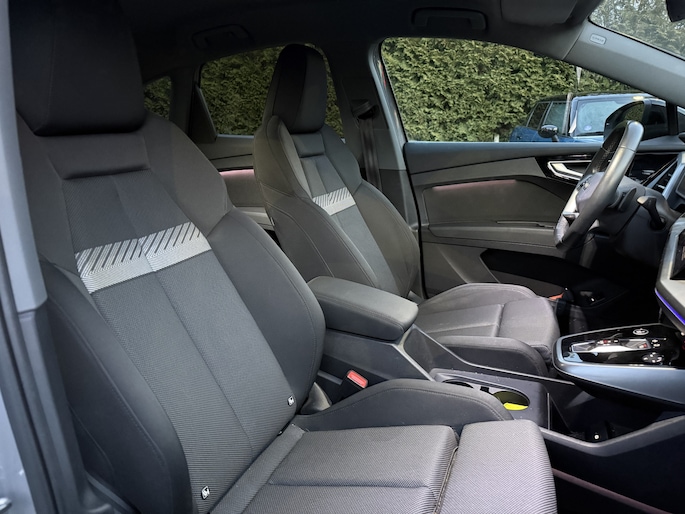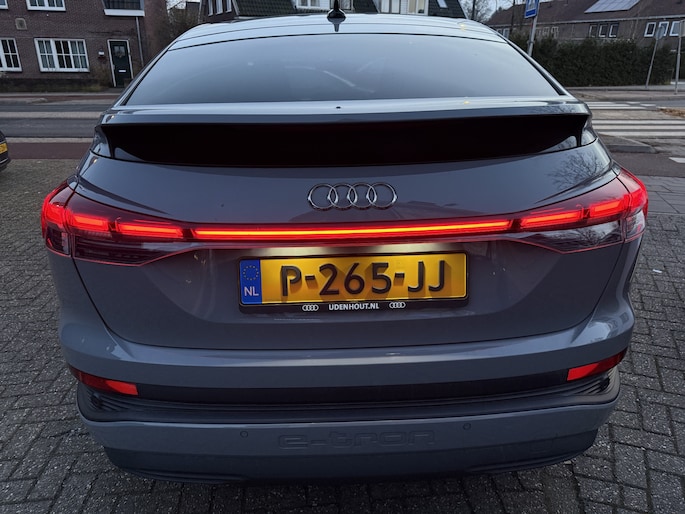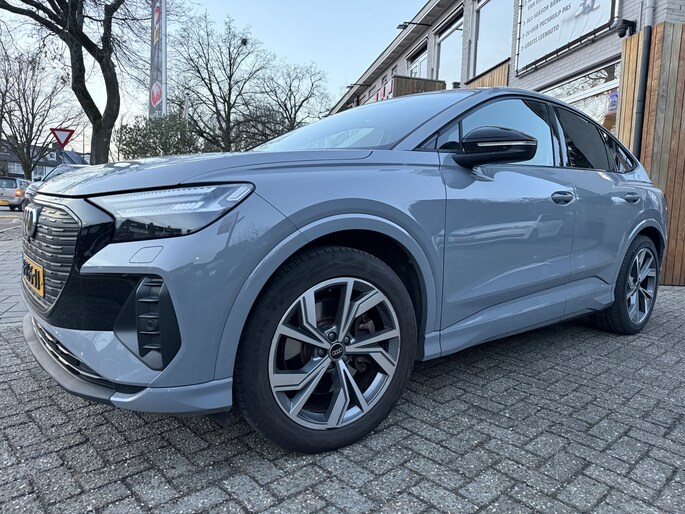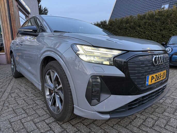 Technologische innovaties. Aantrekkelijke vormgeving. De Audi Q4 Sportback e-tron verenigt het beste van twee werelden. Wat een rijervaring, die elektromotor. Forse actieradius, nul uitstoot en heerlijk pittig rijgedrag! De krachtige motor geeft deze Audi uitstekende prestaties. Op koude dagen voelt u zich snel behaaglijk op de verwarmbare stoelen. De achterklep opent automatisch met een druk op de knop. Handig als u met volle handen staat. De kwaliteit van de matrix LED-verlichting geeft het gevoel dat u bij daglicht rijdt. Ook 20 inch lichtmetalen velgen, donker getint glas achter, in delen neerklapbare achterbank en LED-achterlichten zijn aan boord.