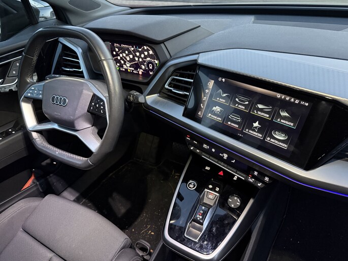 Voor een goed en duidelijk overzicht onderweg is het digitale dashboard uitermate slim ingedeeld. Parkeer en kijk niet om! De achteruitrijcamera doet dat voor u. Adaptive cruise control is een comfortabele en veilige optie. Het systeem reguleert de snelheid en houdt automatisch afstand tot uw voorligger. Deze Audi Q4 Sportback e-tron is 'connected'. Belangrijke functies worden permanent gemeten en zijn uit te lezen via een speciale app, ook op afstand. Met het full map navigatiesysteem kiest u de snelste route naar uw eindbestemming. Met WIFI-hotspot, automatische airconditioning, DAB ontvangst, regensensor, lederen stuur en centrale deurvergrendeling met afstandsbediening is deze auto helemaal compleet.