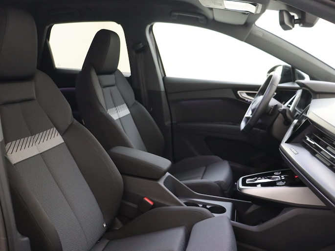 Met deze Audi Q4 e-tron maakt u een krachtig statement: elektrisch rijden is niet alleen beter voor het milieu, het is ook gewoon leuk. Bent u ook toe aan een auto met elektromotor? Goeie keuze! Deze auto is ook voorzien van stoelverwarming. De elektrische achterklep opent met een druk op de knop, zodat u gemakkelijk toegang heeft tot de bagageruimte. De kwaliteit van de matrix LED-verlichting geeft het gevoel dat u bij daglicht rijdt. Ook 19 inch lichtmetalen velgen, donker getint glas achter, neerklapbare achterbank, LED-achterlichten en verstelbare lendensteunen zijn aan boord.
