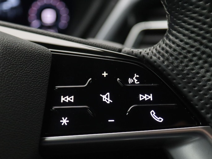 - Vierspaaks lederen sportstuur, afgevlakt aan de boven- en onderzijde, multifunctioneel, met stuurpaddels (2FS)