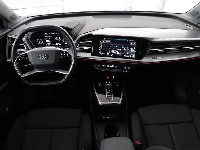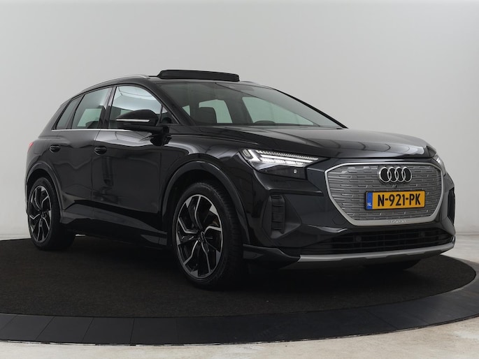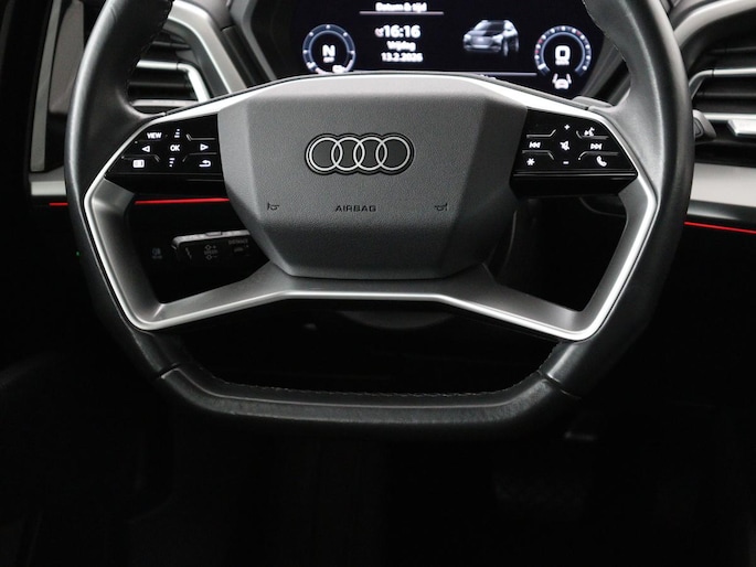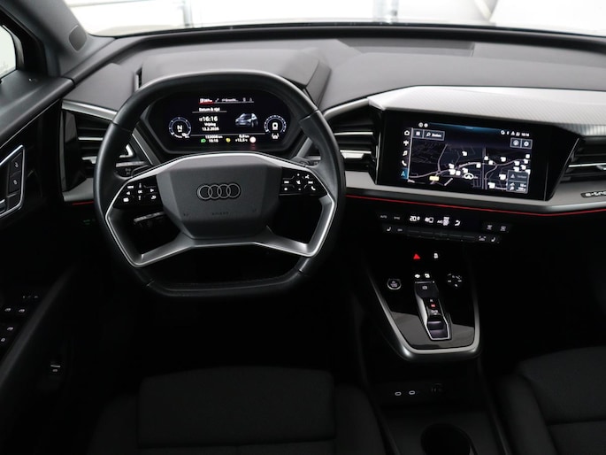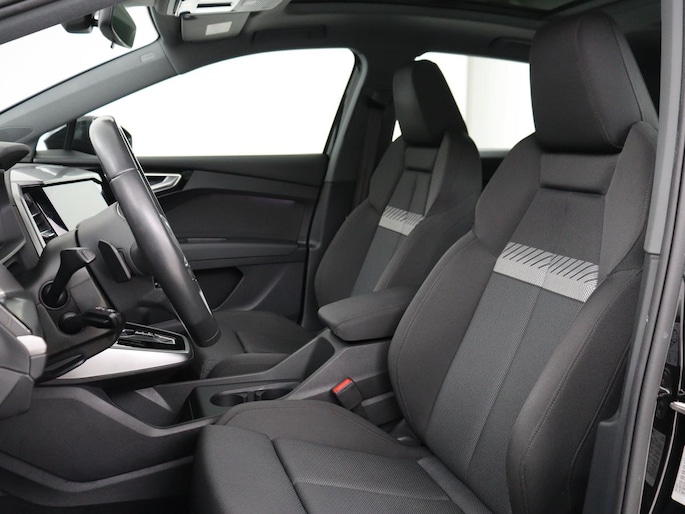 Nooit meer tanken. Een laadkabel volstaat om het accupakket van deze Audi Q4 e-tron op te laden. Geruisloos genieten tegen lage kosten? Dan is deze elektromotor iets voor u! Voorin is het 's winters genieten met de verwarmbare voorstoelen voor zowel bestuurder als bijrijder. Mooi om te zien en heerlijk om in te zitten zijn de sportstoelen, die u onderweg optimale ondersteuning geven. Het interieur baadt in een zee van licht met het elektrische bediende glazen panoramadak. De bagageruimte is toegankelijk via een comfortverhogende elektrische achterklep. Verblinding van tegenliggers is er niet meer bij, dankzij de koplampen met matrix LED-verlichting. En toch de kwaliteit van daglicht in het donker! Verder is de Audi uitgerust met: 19 inch lichtmetalen velgen, neerklapbare achterbank en LED-achterlichten.