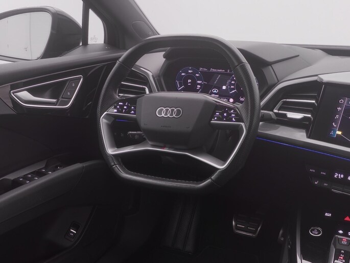 De digitale wereld van mobiliteit verwelkomt u; op het digitale dashboard wordt alles weergegeven om uw rit gemakkelijk en veilig te maken. Inparkeren? Met de achteruitrijcamera heeft u er geen omkijken meer naar! Adaptive cruise control is een comfortabele en veilige optie. Het systeem reguleert de snelheid en houdt automatisch afstand tot uw voorligger. Rijden-stilstaan, rijden-stilstaan. Niks is irritanter en vermoeiender dan filerijden. Daar heeft deze Audi Q4 e-tron een oplossing voor: de file assistent, die met radarmeting permanent het tempo aanpast op de voorligger. Zelfs als die stopt. Veilig en comfortabel rijden wordt nog eens versterkt door Connected Services, zodat u diverse vitale functies van de auto altijd kunt checken in de app. Deze auto is voorzien van full map navigatiesysteem, automatische airconditioning, DAB ontvangst, keyless entry en automatisch dimmende binnenspiegel.