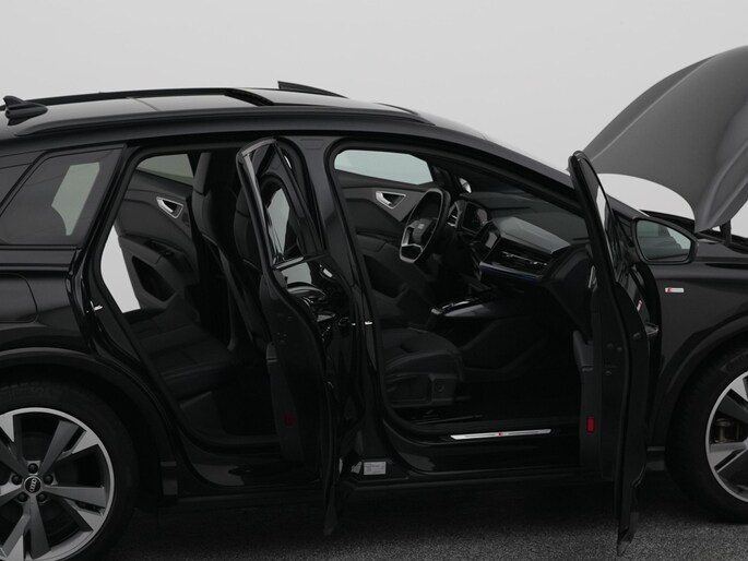 Duurzame mobiliteit is niet langer een ongrijpbare droom. Audi maakt het waar met de innovatieve elektrische Q4 e-tron. U wordt actief onderdeel van de energietransitie met de elektromotor. De S-Line styling geeft dit model een elegante en opvallende uitstraling. Een krachtige motor geeft deze auto zijn sportieve prestaties. Van een cabrio heeft u alleen 's zomers plezier. Maar het elektrisch bediende glazen panorama dak van deze auto betekent het hele jaar genieten. Net zoals u elke dag het gemak ervaart van de elektrisch bedienbare achterklep. Al is het buiten nog zo koud, de stoelverwarming maakt alles weer goed! De koplampen met matrix LED-verlichting zijn het hoogst haalbare op het gebied van autoverlichting. In deze Audi profiteert u onder andere ook van: 20 inch lichtmetalen velgen, sportonderstel, zwarte hemelbekleding, donker getint glas achter, neerklapbare achterbank en LED-achterlichten.