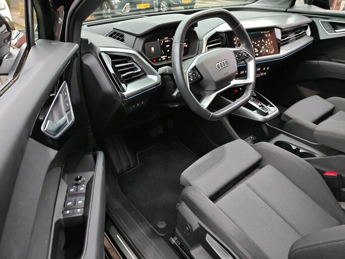 De nieuwste veiligheidssystemen komen in deze Audi Q4 e-tron samen. In het instrumentarium zie je tijdens de rit ook de belangrijkste verkeersborden aangegeven, die de auto automatisch voor je leest. Ongemerkt buiten de rijstrook raken? Nee hoor, het Lane-keeping systeem waarschuwt en corrigeert.