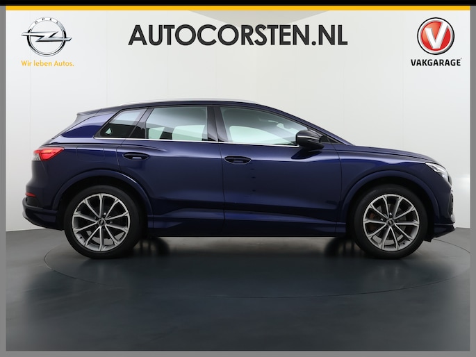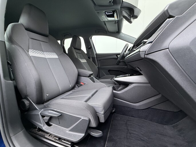 U zult het zien: overstappen naar elektrisch rijden kost u geen enkele moeite als u kiest voor deze Audi Q4 e-tron. Natuurlijk is de actieradius mede afhankelijk van de weersomstandigheden, maar een volle acculading is over het algemeen voldoende voor de gewone dagelijkse ritten. Het opladen kan gewoon 's nachts, terwijl u slaapt. Een krachtige motor geeft deze auto zijn sportieve prestaties. 's Winters komen de verwarmbare voorstoelen heerlijk van pas. De sportstoelen houden u en uw bijrijder goed op z'n plek tijdens het accelereren en bij het nemen van scherpe bochten. Met een druk op de knop gaat de elektrische achterklep open. Verblinding van tegenliggers is er niet meer bij, dankzij de koplampen met matrix LED-verlichting. En toch de kwaliteit van daglicht in het donker! In deze Audi profiteert u onder andere ook van: 20 inch lichtmetalen velgen, zwarte hemelbekleding, getint glas, neerklapbare achterbank en LED-achterlichten.