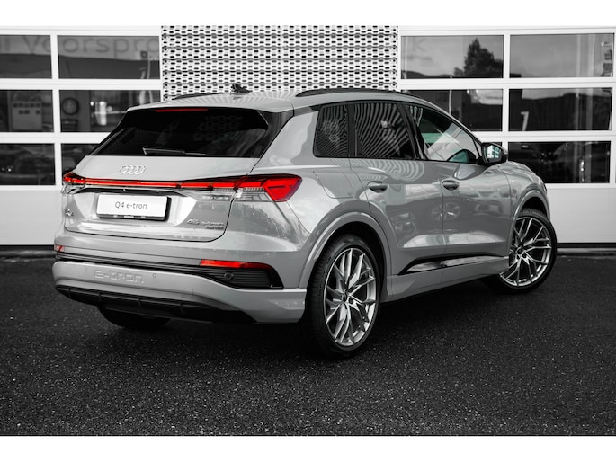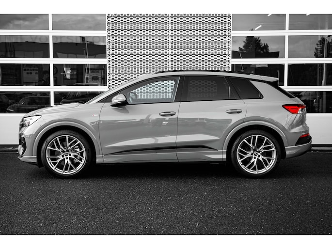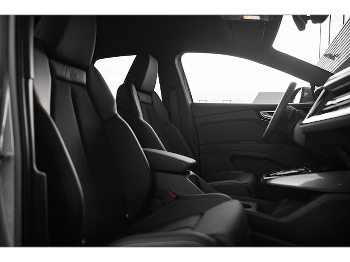 Duurzaam en dynamisch, de Audi Q4 e-tron verenigt deze twee uitersten in zich. Dit is een auto uit, er staat 0 kilometer op de teller. Milieuvriendelijk, stil en uitstekende rijprestaties: dat zijn de voordelen van de elektromotor. Het gaat hier om een nieuwe auto, hij is nu direct leverbaar. Een krachtige motor geeft deze auto zijn sportieve prestaties. Een handige voorziening op deze auto is de elektrische achterklep die u op afstand kunt openen. De koplampen zijn voorzien van matrix LED-verlichting waarmee u aanzienlijk verder kan kijken in het donker. Het systeem past zelf de lichtstraal aan op het moment tegenliggers verblind kunnen worden. Ook sportonderstel, S-line sportinterieur, zwarte hemelbekleding, donker getint glas achter en verstelbare lendensteunen in de voorstoelen zijn aan boord. Geen nekkramp of spiegelwerk meer bij het achteruitrijden: de achteruitrijcamera kijkt en ziet alles! Adaptive cruise control is veilig en comfortabel. De snelheidsregelaar houdt automatisch afstand tot het voertuig dat voor u rijdt. Het infotainmentaanbod is zeer uitgebreid. Ontspannen reizen doet u met behulp van het MMI navigatiesysteem terwijl u muziek afspeelt via het Audi audiosysteem met DAB-radio. De regensensor schakelt automatisch de ruitenwissers in bij regenval. Ook is de Audi uitgerust met: automatisch dimmende buitenspiegels, isofix-aansluiting, centrale portiervergrendeling en in hoogte en diepte verstelbaar stuur. Als bestuurder van deze Audi bent u nooit alleen. U wordt onderweg bijgestaan door technologische hulpmiddelen die samen met u de weg in de gaten houden. Als het nodig is, grijpen ze zelfs in, door te remmen of bij te sturen. Lane assist waarschuwt als u onbedoeld buiten uw rijstrook dreigt te raken. Wordt dit uw nieuwe auto? We verwelkomen u graag om u deze Q4 e-tron te laten zien, en dan leggen we u ook uit welke financieringsvormen we erbij kunnen aanbieden.