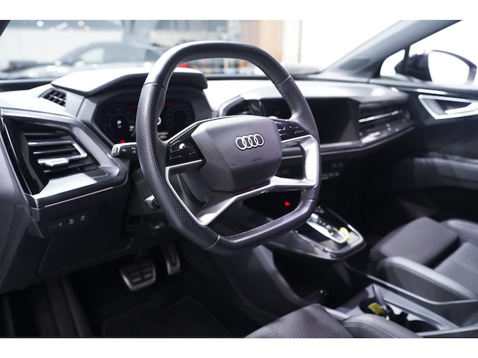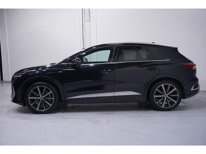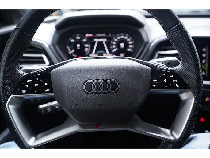 Hij levert uitstekende prestaties en doet dat met zorg voor het milieu. Maar tegelijk is de Audi Q4 e-tron ook gewoon een auto die u volop ruimte en comfort biedt. U kunt ervoor kiezen vanwege het milieu. Maar de elektromotor biedt ook power en prestaties! Exclusiviteit en sportiviteit komen samen in de S-Line styling. Behaaglijk onderweg zijn? Als bestuurder geniet u van de verwarmbare voorstoelen. Net als uw bijrijder! Sportief rijden stelt eisen aan een stevige zitpositie voor rijder en bijrijder. Vandaar de strakke sportstoelen! De elektrische achterklep opent met een druk op de knop, zodat u gemakkelijk toegang heeft tot de bagageruimte. Verblinding van tegenliggers is er niet meer bij, dankzij de koplampen met matrix LED-verlichting. En toch de kwaliteit van daglicht in het donker! Tot de uitrusting behoren ook 20 inch lichtmetalen velgen, sportonderstel, donker getint glas achter, neerklapbare achterbank en LED-achterlichten.
