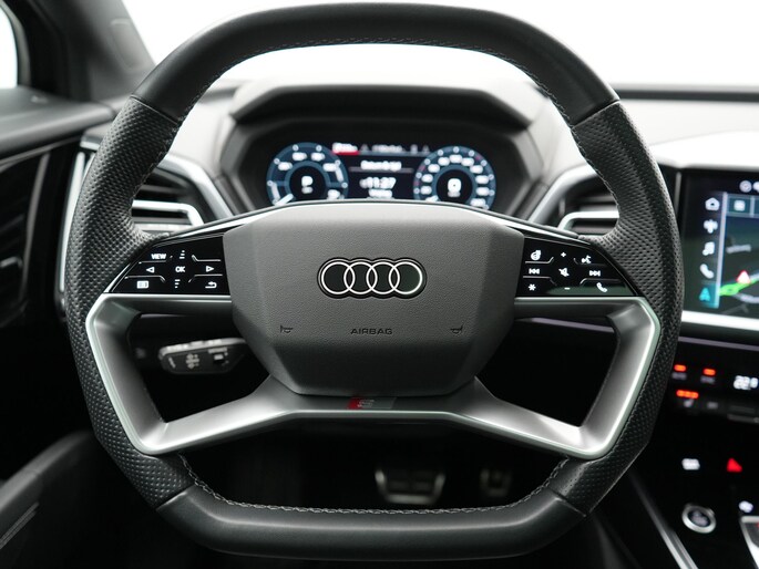 Autorijden zonder plaatselijke uitlaatemissies. Audi maakt deze belofte waar met deze Q4 Sportback e-tron. Met de elektromotor zoeft u fluisterzacht over de weg. Ook qua looks springt deze auto eruit, vanwege de fraaie S-Line styling. De krachtige motor geeft deze Audi uitstekende prestaties. Lekker hoor, die verwarmbare voorstoelen. Helemaal op koude dagen. De sportstoelen geven het interieur een super strakke look. Een praktische extra is de elektrisch bedienbare achterklep die opent en sluit met een druk op de knop. De matrix LED-verlichting in de koplampen bestaat uit een raster van lichtpunten met maximale opbrengst. Bij tegenliggers past het systeem precies die punten aan die hinderlijk kunnen zijn. U behoudt maximaal zicht! U wordt in deze auto ook getrakteerd op 20 inch lichtmetalen velgen, sportonderstel, neerklapbare achterbank en LED-achterlichten.