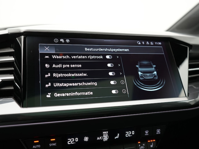 Aan boord van deze Audi houden verschillende geavanceerde systemen voor u de weg in de gaten. Ze waarschuwen u voor noodsituaties en kunnen in een aantal gevallen ook zelf ingrijpen. Bij de veiligheidssystemen van deze auto hoort ook de verkeersbord-detectie. Die leest tijdens het rijden als het ware met u mee en attendeert u op de significante verkeersborden langs en boven de weg. Met het Lane-keeping systeem komt u nooit per ongeluk buiten de rijstrook.
