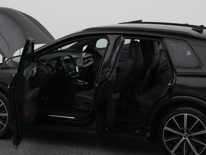 Reed u eerder elektrisch of maakt u voor het eerst kennis met deze techniek? In de Audi Q4 e-tron voelt u zich thuis vanaf het moment dat u instapt. U hoort slechts het lichte gezoem van de elektromotor tijdens het rijden. Ook qua looks springt deze auto eruit, vanwege de fraaie S-Line styling. Een krachtige motor geeft deze auto zijn sportieve prestaties. 's Winters komen de verwarmbare voorstoelen heerlijk van pas. In het interieur domineren de sportstoelen, die er niet alleen stijlvol uitzien, maar die u ook optimaal ondersteunen tijdens de rit. Daglicht valt vrij binnen door het elektrisch bediende glazen panoramadak. Een handige voorziening op deze auto is de elektrische achterklep die u op afstand kunt openen. De geavanceerde matrix LED-verlichting in de koplampen levert maximaal helder zicht en past zich subtiel aan zodra er een tegenligger komt. Zonder lichtkwaliteitsverlies! In deze auto profiteert u onder andere ook van: 20 inch lichtmetalen velgen, sportonderstel, zwarte hemelbekleding, donker getint glas achter, neerklapbare achterbank en LED-achterlichten.