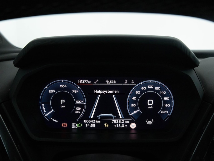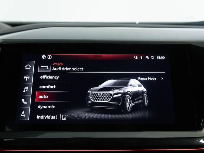 Het digitale dashboard vertelt je onderweg alles dat bijdraagt aan een veilige, efficiënte rit. Met behulp van de achteruitrijcamera kan je zo strak inparkeren als je maar wilt! Adaptive cruise control houdt de ingestelde snelheid vast en houdt automatisch afstand tot jouw voorligger. Rijden-stilstaan, rijden-stilstaan. Niks is irritanter en vermoeiender dan filerijden. Daar heeft deze Audi Q4 Sportback e-tron een oplossing voor: de file assistent, die met radarmeting permanent het tempo aanpast op de voorligger. Zelfs als die stopt. Connected Services zorgen ervoor dat de belangrijkste functies en data van de auto altijd en overal te checken zijn. Gewoon via de app op de smartphone. Deze auto is voorzien van full map navigatiesysteem, electronic climate control, multifunctioneel lederen stuur, DAB ontvangst, keyless entry en automatisch dimmende buitenspiegels.
