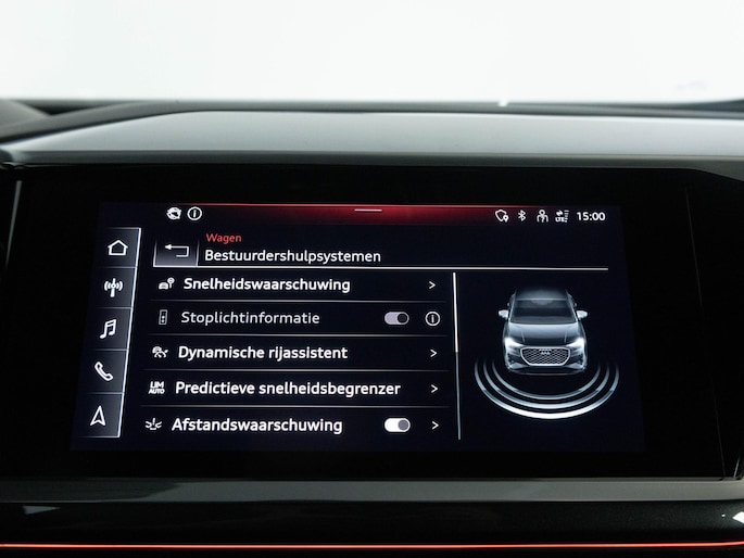 In de Audi Q4 Sportback e-tron heeft jouw veiligheid en die van jouw omgeving prioriteit. De head-up display zorgt dat je de weg én de route-info constant in beeld hebt. Belangrijk voor jouw veiligheid en die van jouw passagiers is de verkeersbord-detectie in deze auto. Indien je onbedoeld de rijstrook lijkt te verlaten, reageert het Lane-keeping systeem meteen en corrigeert.